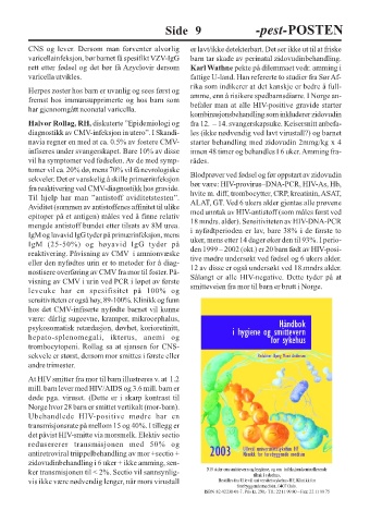 fra reaktivering ved CMV-diagnostikk hos gravide. bør være: HIV-provirus–DNA-PCR, HIV-As, Hb,