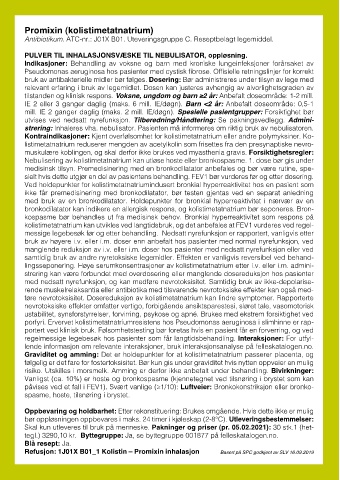 Refusjon: 1J01X B01_1 Kolistin – Promixin inhalasjon Basert på SPC godkjent av SLV 16.09.2019