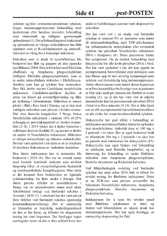 Neoehrlichia mikurensis i omtrent 10% (0-25% Doksycyclin har god effekt i behandling av