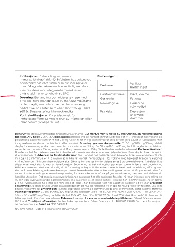 pasienter som er minst 2 år og veier minst 14 kg og mindre enn 25 kg. Tabletten tas med eller uten mat. Kontraindikasjoner:
