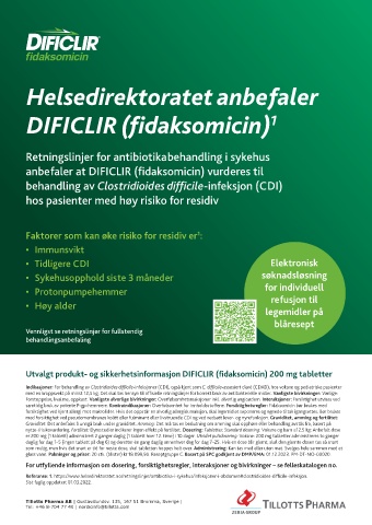Utvalgt produkt- og sikkerhetsinformasjon DIFICLIR (fidaksomicin) 200 mg tabletter