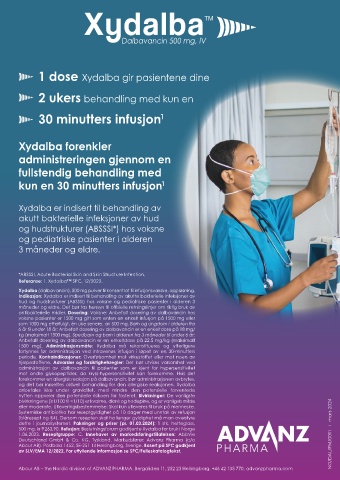 Indikasjon: Xydalba er indisert til behandling av akutte bakterielle infeksjoner av