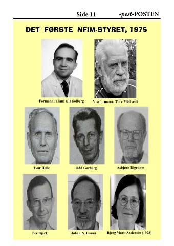 Side 11 -pest-POSTEN DET FØRSTE NFIM-STYRET, 1975 Formann: Claus Ola Solberg Viseformann: Tore Midtvedt Ivar Helle Odd Garborg Asbjørn Digranes Per Bjark Johan N. Bruun Bjørg Marit Andersen (1978)