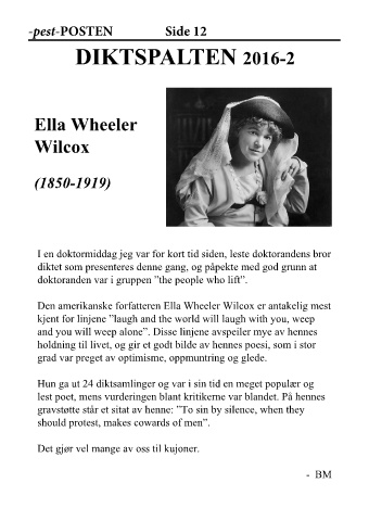 Den amerikanske forfatteren Ella Wheeler Wilcox er antakelig mest