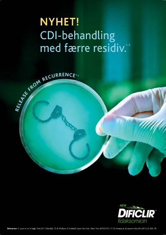 NYHET! CDI-behandling med færre residiv. 1–3 release from recurrence 1–3 Referanser: 1. Louie et al. N Engl J Med 2011;364:422–31. 2. Mullane & Gorbach. Expert Rev Anti Infect Ther 2011;9:767–77. 3. Cornely et al. Lancet Infect Dis 2012;12: 281–89.
