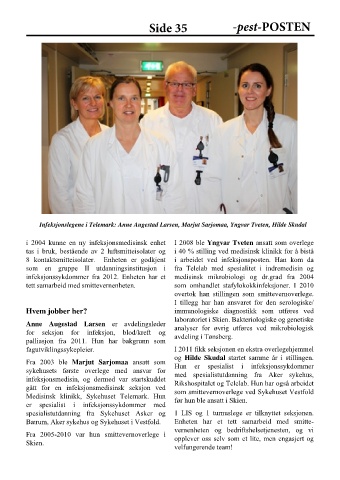 tett samarbeid med smittevernenheten. som omhandlet stafylokokkinfeksjoner. I 2010