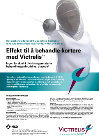 eliminasjon, og hvor forhøyede plasmakonsentrasjoner er forbundet med alvorlige For en fullstendig oversikt over bivirkninger henvises det til SPC for Victrelis.Svært van-