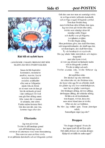 Den som tror utan att först tvivla Hjälp till att hålla de andra oppe!”