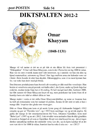 ”Diktspalten”. Vi har valt Omar Khayyam, som levde i Persia for om lag 1000 år sidan.