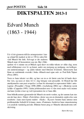 spalten vil vi minne om at Munch også skrev en rekke tekster av ulike slag, noen
