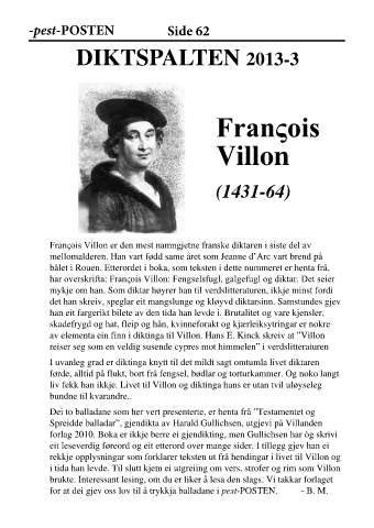 har overskrifta: Franςois Villon: Fengselsfugl, galgefugl og diktar. Det seier