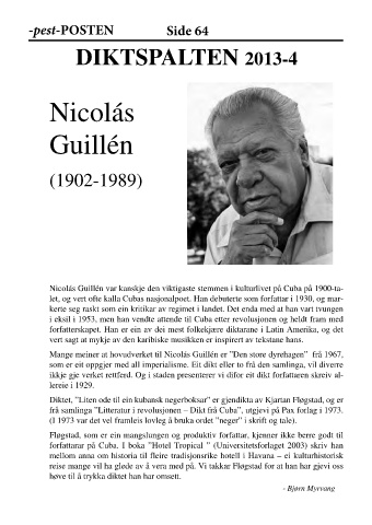 frå samlinga ”Litteratur i revolusjonen – Dikt frå Cuba”, utgjevi på Pax forlag i 1973.