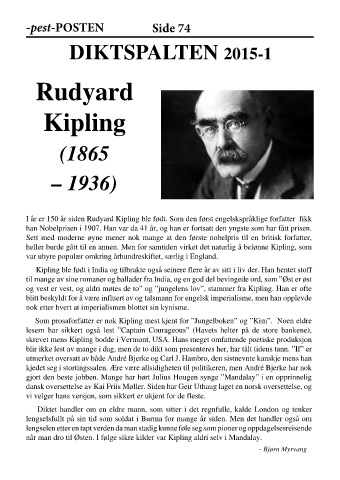 I år er 150 år siden Rudyard Kipling ble født. Som den først engelskspråklige forfatter fikk