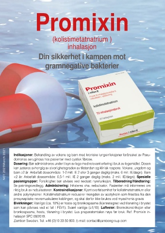 bronkospasme, hoste, tilsnøring i brystet. Les preparatomtalen nøye før bruk. Ref. Promixin in- påvises ved et fall i FEV1). Svært vanlige (≥1/10): Luftveier: Bronkokonstriksjon eller bronko-