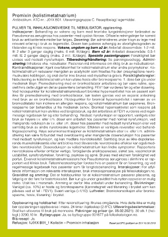 Refusjon: 1J01X B01_1 Kolistin – Promixin inhalasjon Basert på SPC godkjent av SLV 16.09.2019