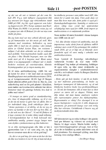 med politikk. Veterinærmedisin hadde også fått antibiotikaresistens.