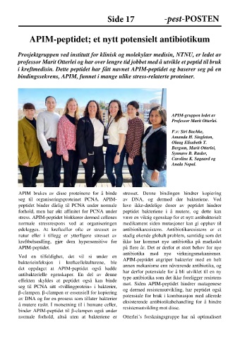 stress. APIM-peptidet blokkerer dermed cellenes være en viktig egenskap for et nytt antibakterielt